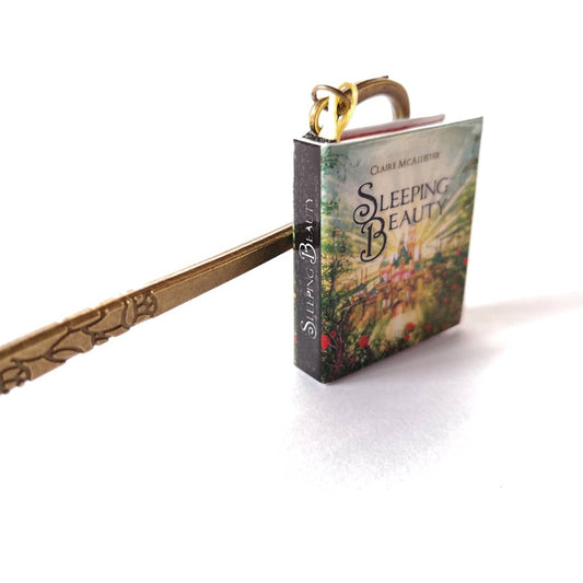 Marcapáginas Mini Libro La Bella Durmiente. Marcador, Colgante o Llavero